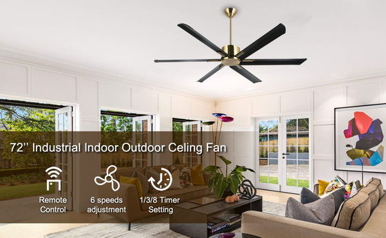 The black gold ceiling fan relies on size to move air in high volume, while it rotates at lower speeds than smaller ceiling fans. It creates significant air circulation for cooling large commercial, industrial and residential spaces.