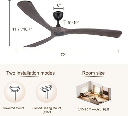 The fan can install on different occasions,such as living room, patio and so on. It operate very well with 3 blades. The dc ceiling fan is very compact and have a sleek, modern look. The remote is easy to operate the 6 speeds and there is a silent fan motor and just a slight rustling of the air movement on the highest speed.